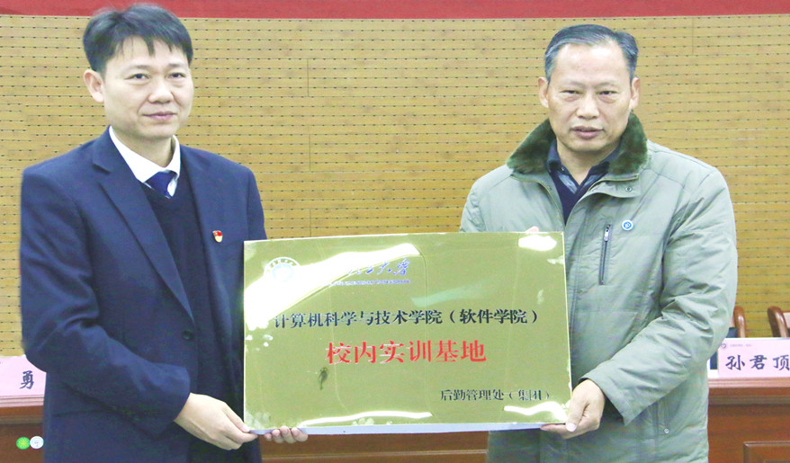 贾宗璞首先对后勤集团的信息化发展做出了肯定,并对后勤在“三全育人”方面做出的探索表示感谢。他从重点学科、硕博士学位点、学生培养模式、科研领域等方面向在场人员介绍了我院的基本概况,指出我院在培育人才方面高度重视学生的实践能力和综合素养。此次合作协议的签署,为培育理论与实践相结合的高素养、高技能新时代优秀计算机人才提供了保障。最后他指出,此次我院与后勤集团的合作设立校内实训基地,为我院师生学习、实训和科研等方面提供了多样化选择,同时助推了后勤管理信息化的发展与建设。