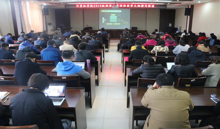 4月9日下午,我院在201会议室召开全体教师大会,开展2018版培养方案课程教学大纲修订专题指导活动。活动由院长贾宗璞主持。