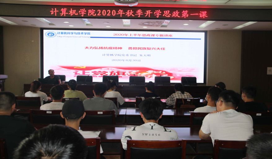 8月30日下午,我院党委书记朱天明以《大力弘扬抗疫精神 勇担民族复兴大任》为题,为80余名学生代表讲授了思政课,用大量的生动实例详细阐述了习近平总书记3月10日在亲临武汉考察指导疫情防控工作时精辟概括的“不怕牺牲、勇于担当、顾全大局、甘于奉献”的抗疫精神。朱天明号召同学们要抗疫精神的弘扬者、传承者、践行者;要坚定理想信念,把精神动力转化为务实行动,发奋学习成才,争做担当民族复兴大任的时代新人,并对同学们提出了三点希望和要求:一是要正确认识形势,做好自我防护,严格遵守学校的防控规定和纪律要求;二是要顾全大局,积极配合学校做好各项防控工作,学生干部要充分发挥表率作用,管理好班级同学,防止意外情况发生;三是要刻苦努力学习,把疫情当教材,把苦难当磨练,坚定“四个自信”,厚植爱国情怀,增强报国本领,与祖国共成长,与社会共进步。