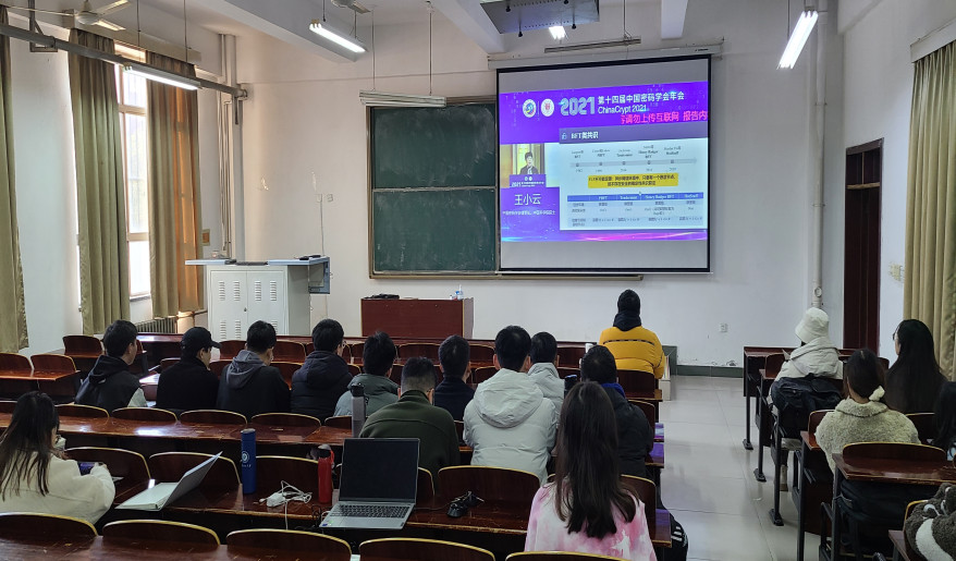 12月4日—5日,由中国密码学会主办、贵州大学和贵州省公共大数据重点实验室联合承办的2021第十四届中国密码学年会(ChinaCrypt2021)在线上召开。学院部分教师和研究生在103教室对此次会议进行了观看和学习。