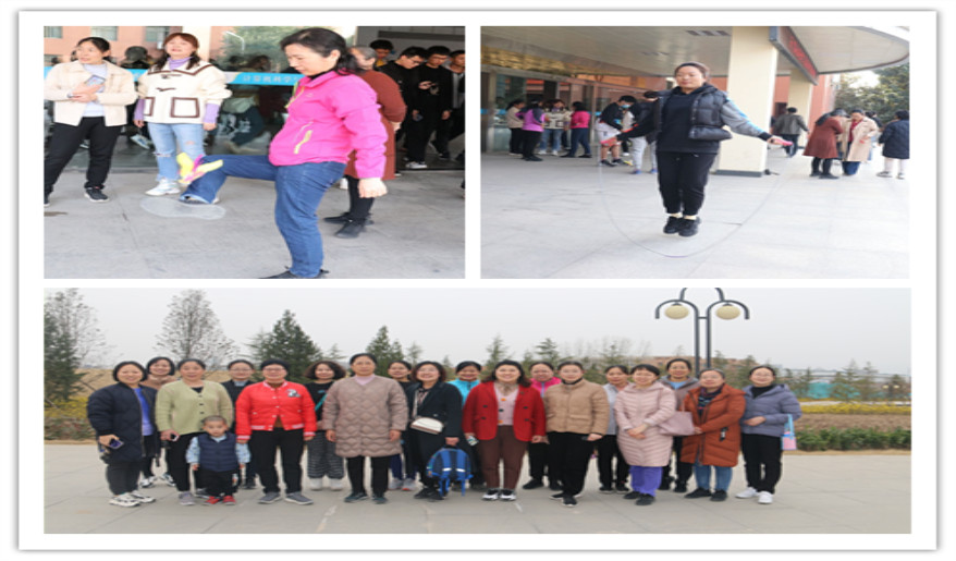 3月6日,伴着徐徐的春风,女教工们在大沙河开展了健步走活动。大家沿着步道结伴行走,三五成群,时而欢声笑语,时而驻足观景,沐浴着春日的阳光,呼吸着清新的空气,一扫平时忙碌的心情。3月8日,在学院门口开展了“一分钟跳绳”和“踢毽子”等健身活动。女老师们兴致勃勃,热情高涨。大家在活动中一展风采,既收获了快乐又锻炼了身体,幸福的笑容和独有的魅力在此刻定格。