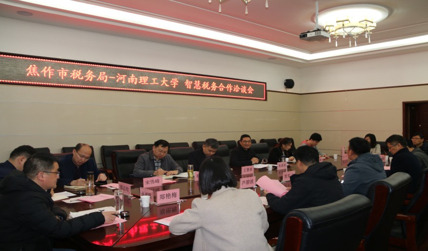 3月3日上午,我院与焦作市税务局智慧税务合作洽谈会在院217会议室举行。焦作市税务局大数据和风险局局长朱国利、以及焦作市政务服务和大数据管理局副局长贺军义、我院院长孙君顶、副院长彭维平出席会议,焦作市税务局、政务服务与大数据管理局相关科室负责人和学院相关系负责人及部分教师代表参加会议,会议由贺军义主持。