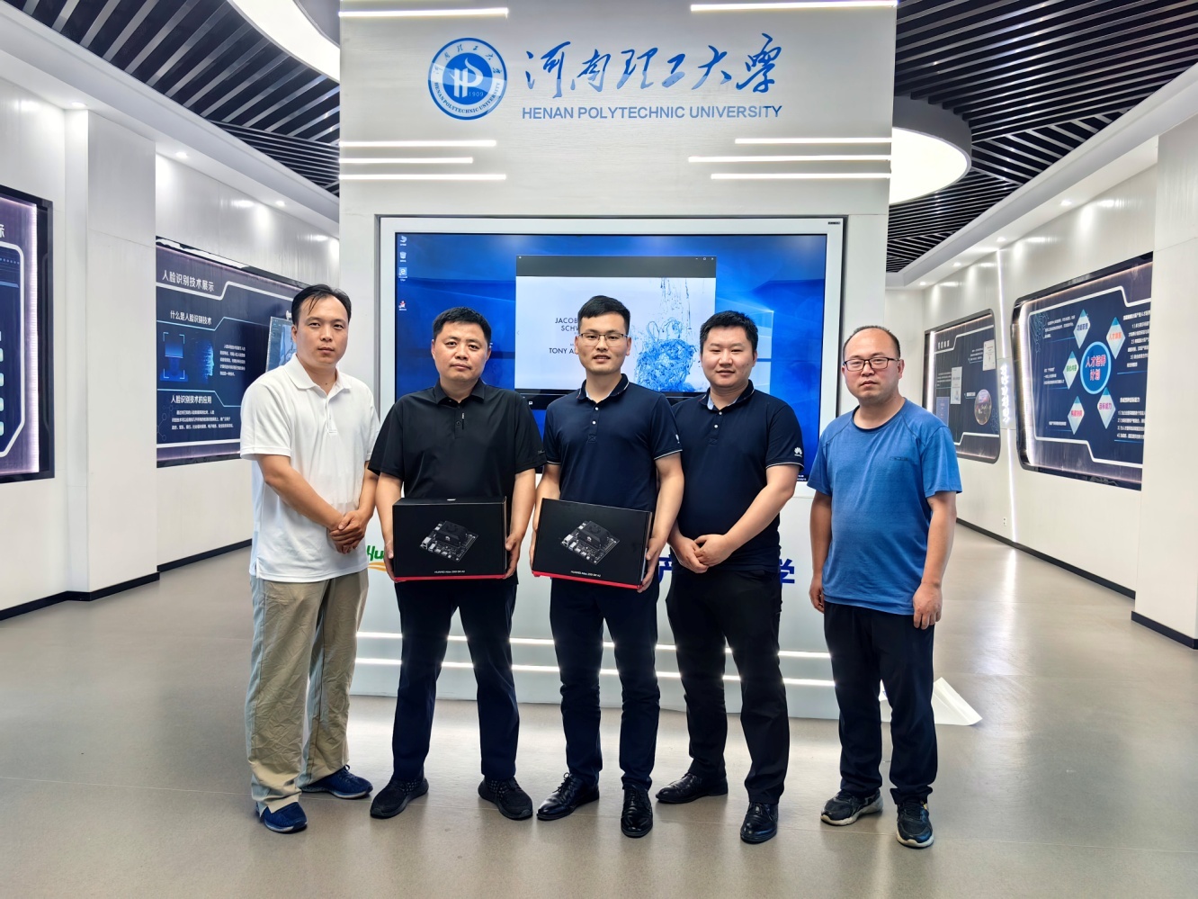 中原人工智能计算中心由许昌市政府与华为公司共同建设,致力于推动人工智能产业在河南省的推广和行业应用。计算中心教育生态负责人孙星星和技术专家刘贤阁在必赢242net官网2楼鲲鹏展厅,向学院赠送两套华为新开发的昇腾新一代Atlas 200I DK A2开发者套件,支持学院进行人工智能人才培养和学科竞赛。