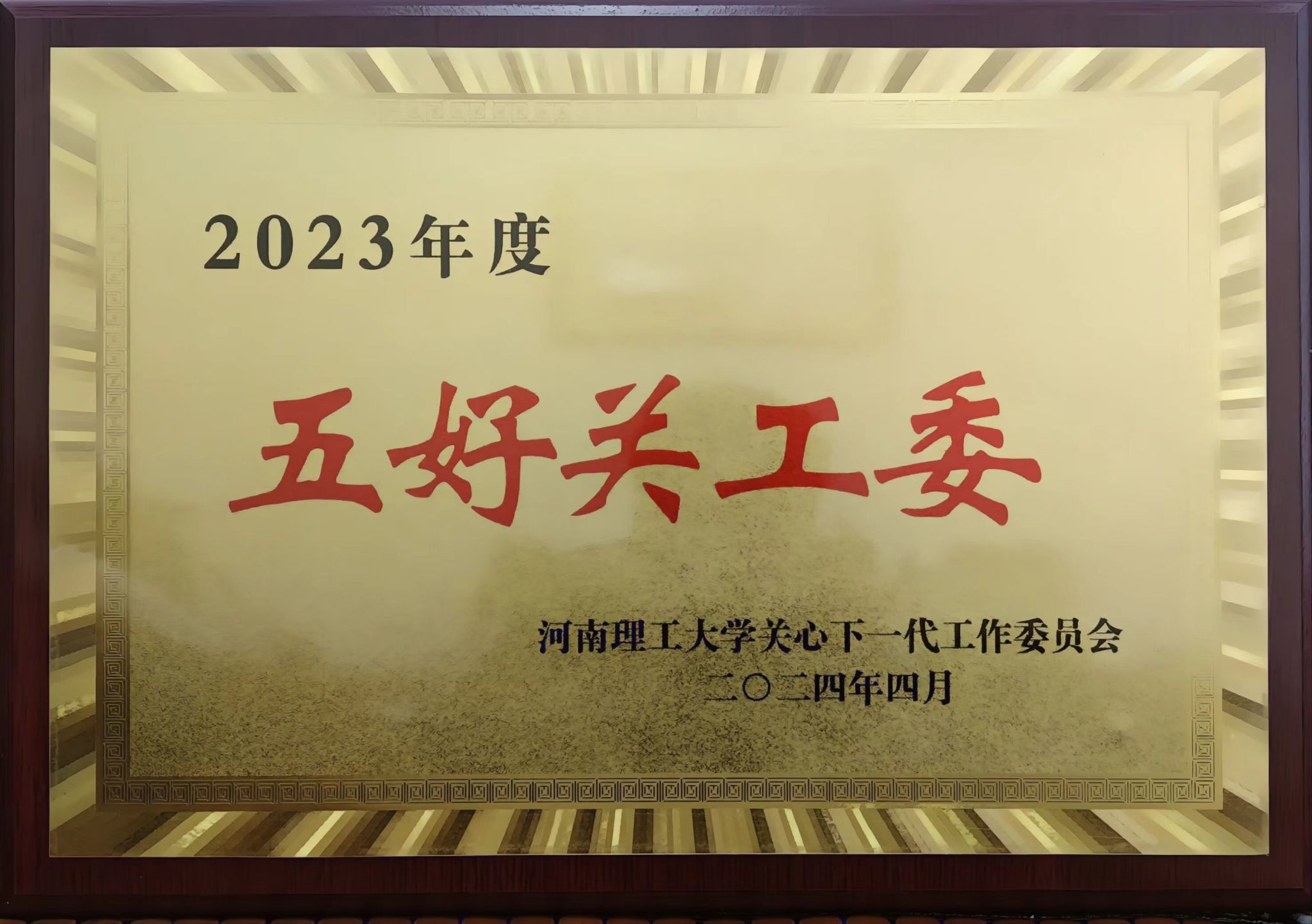 近日,必赢242net官网关工委在必赢242net官网关工委开展的“创建五好关工委”活动评选中,获得2023年度校级“五好”关工委光荣称号。
