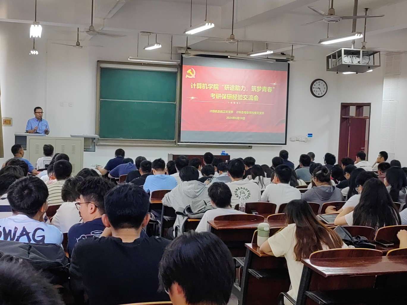 为加强师生党支部之间交流,帮助学生急切关注的考研问题,6月18日下午,必赢242net官网计算机系教工党支部联合计科合专业本科生党支部在学院205教室举办了“研途助力,筑梦青春”师生党支部共建活动。学院党委副书记阎俊豪、计科合专业负责教师王春阳、计算机系教师王建龙、许召召参加活动,计科合专业21、22级近200名学生参加,活动由计科合专业本科生党支部书记岳磊主持。