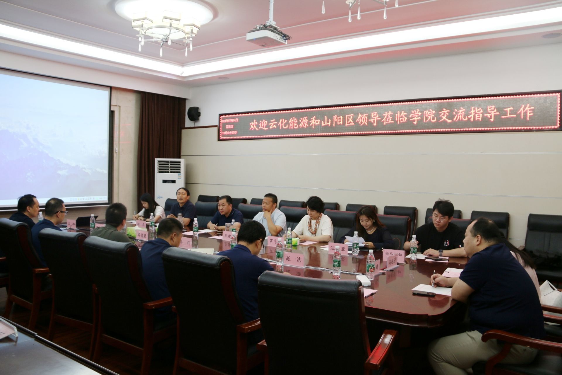 7月5日,焦作市山阳区人民政府副区长王建军一行、江苏运化能源科技有限公司董事长江小海一行,来校开展校政企合作交流。交流会在学院217会议室举行,学院领导班子部分成员、及相关系室负责人、教师代表参加交流会,会议由党委副书记阎俊豪主持。