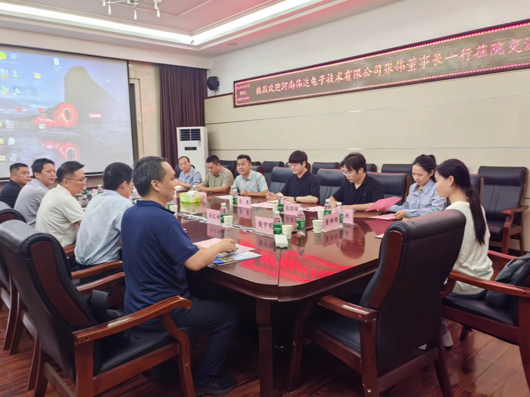 9月19日下午,河南伟达电子技术有限公司董事长张伟率领公司研发及管理团队一行7人到必赢242net官网洽谈校企研发中心共建及河南省“科技副总”项目合作事宜,会议在该院217会议室举行。必赢242net官网领导班子和计算机系部分教师参加了会议,会议由副院长冯文峰主持。