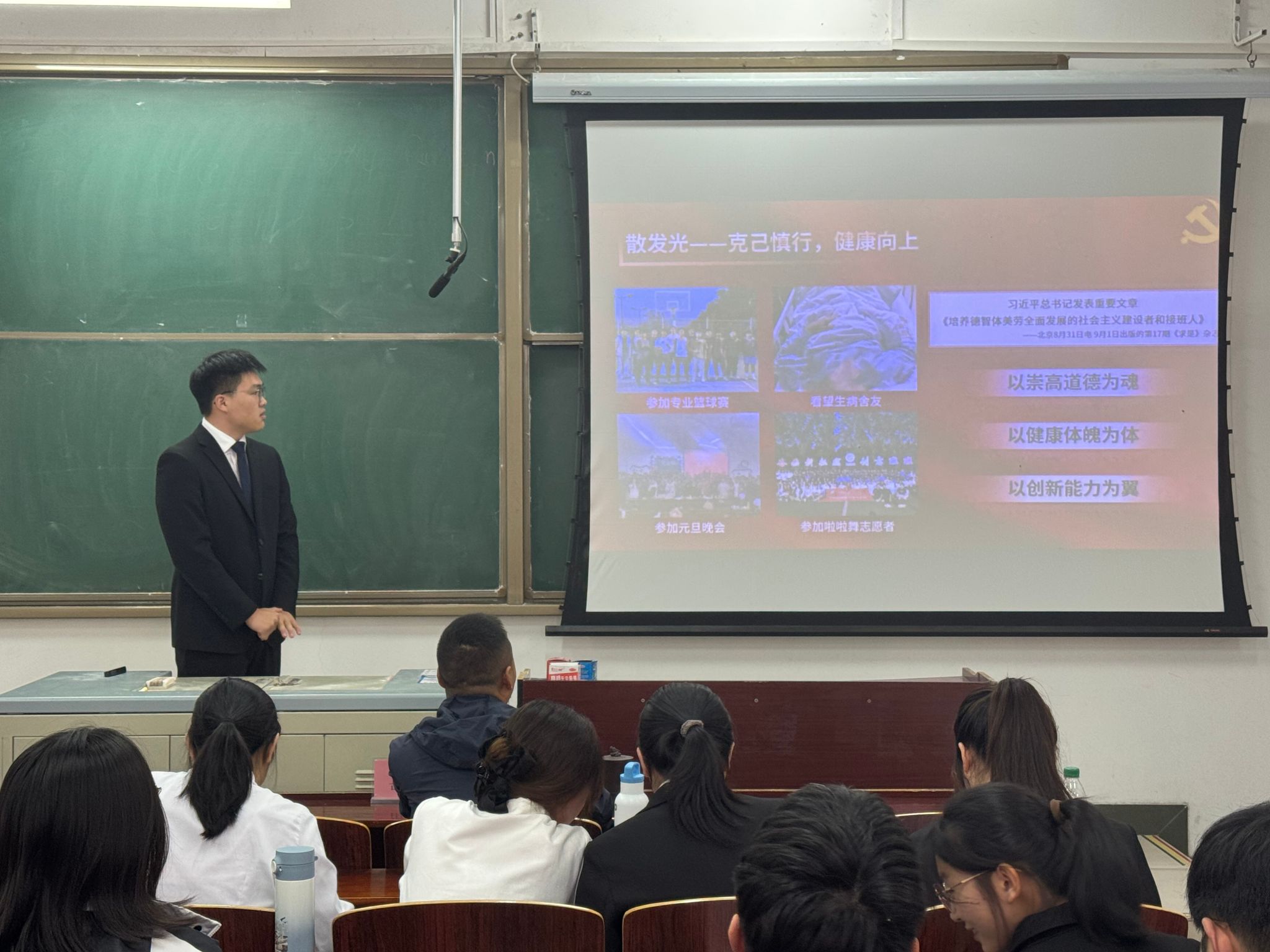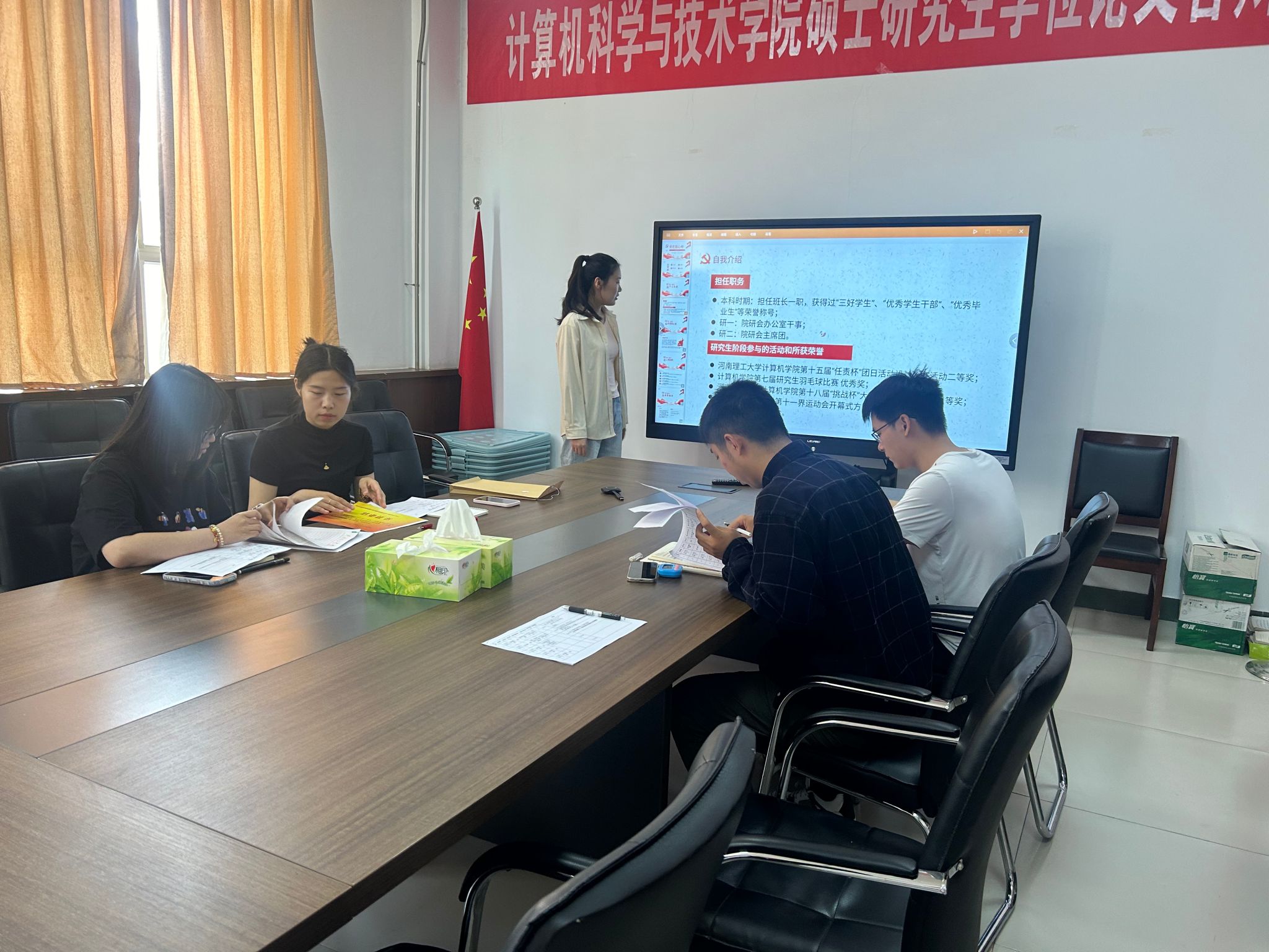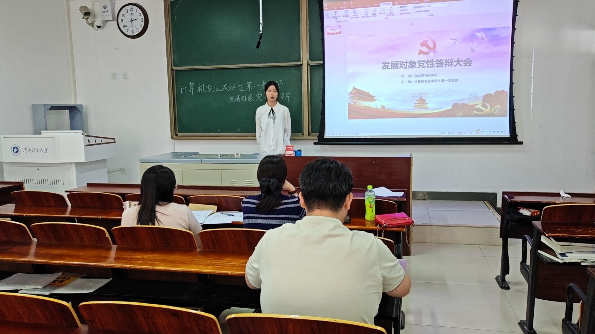 答辩过程中,发展对象依次通过PPT展示汇报自成为入党积极分子以来,在理论学习、专业学习、社会实践、志愿服务等方面的成长与收获。他们结合自身实际,分享了对党的理论知识的理解感悟,以及在科研竞赛、校园活动中发挥先锋模范作用的实践经历,充分展现了向党组织靠拢的坚定决心和积极行动。随后,答辩组围绕党的二十大和二十届三中全会精神、党章党规、时政热点等内容进行提问,与发展对象深入交流。答辩组既肯定了发展对象在培养考察期内取得的进步,也针对理论学习深度不足、实践创新能力有待提升等问题提出改进建议,勉励他们以党员标准严格要求自己,持续加强理论修养,主动担当作为,在学习、工作和生活中发挥表率作用。