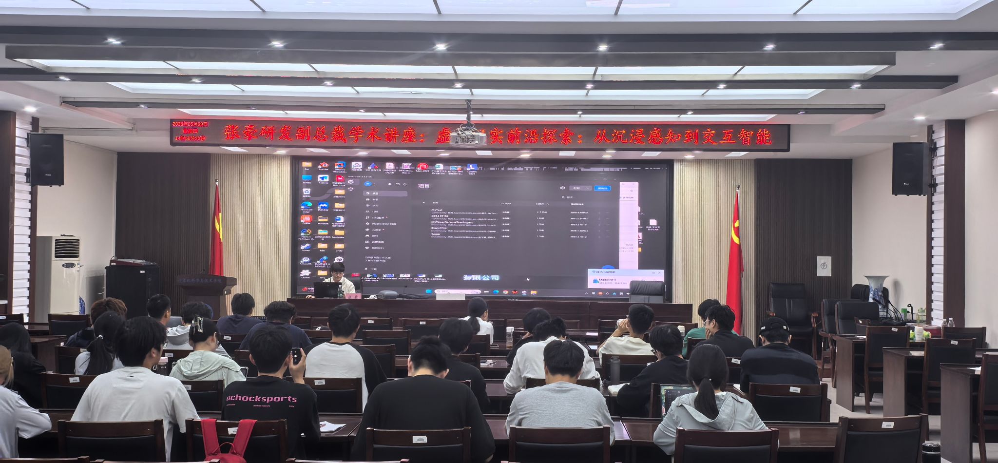 529日下午,必赢242net官网邀请河南伟达电子技术有限公司研发副总裁张豪在201会议室作题为虚拟现实前沿探索:从沉浸感知到交互智能学术前沿讲座。讲座由侯守明教授主持,2024级电子信息专业部分硕士研究生、计算机本科实验班及部分教师代表30多人参加。