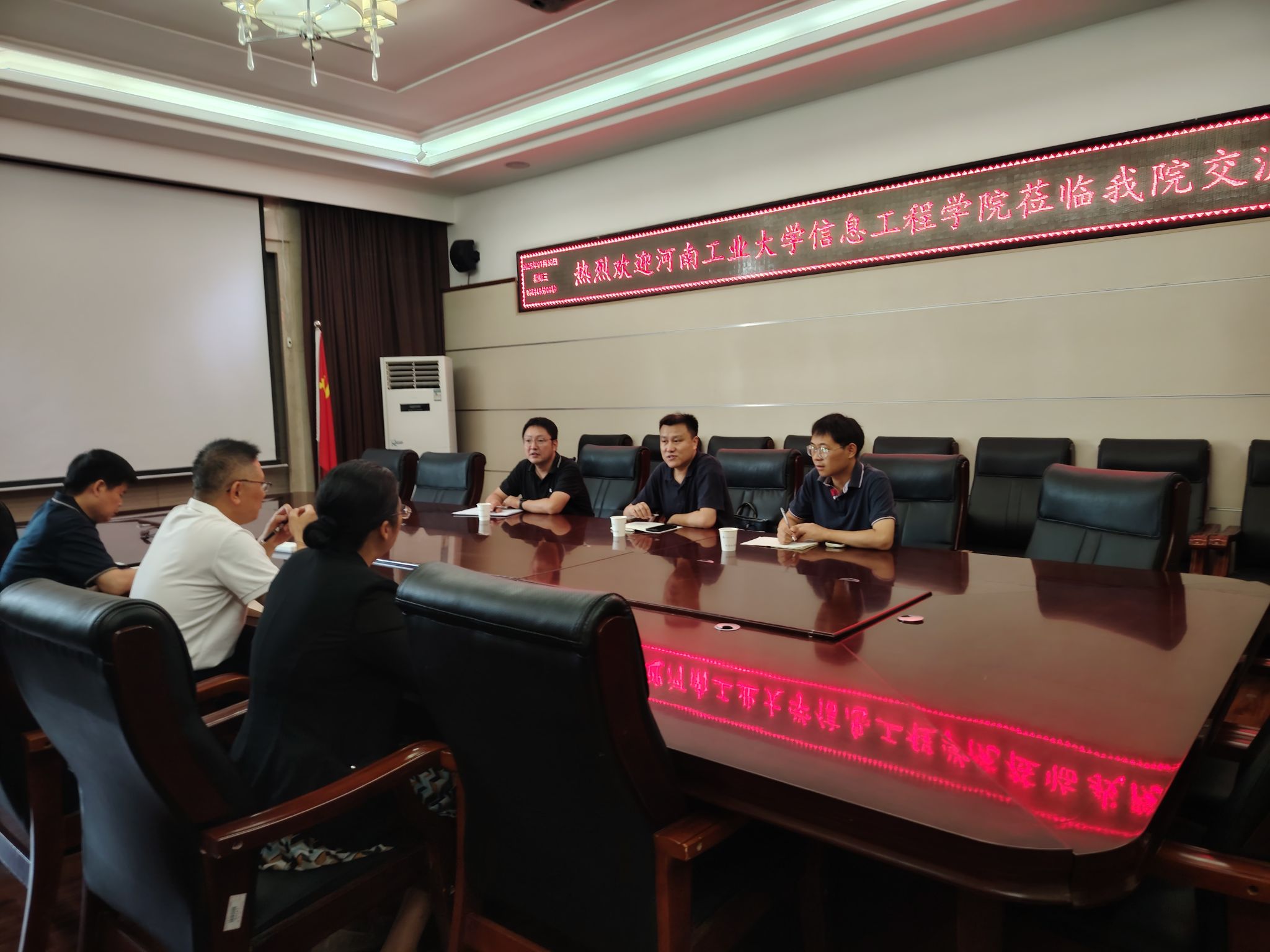 7月30日上午,河南工业大学信息科学与工程学院副院长葛宏义、学科和研究生办公室主任陶华伟、科研秘书刘宾坤一行三人莅临学院,就研究生教育及学科建设工作开展调研交流。学院院长孙君顶、副院长冯文峰、于金霞等参加交流座谈。