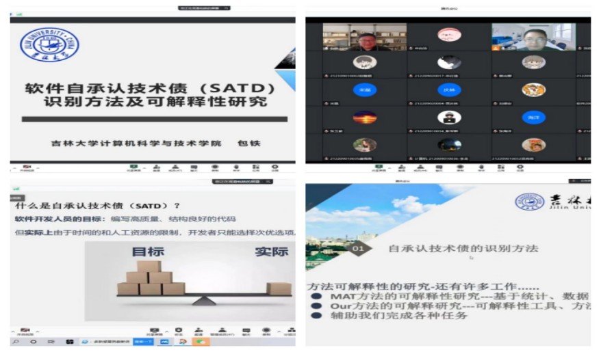 12月8日上午,吉林大学教授包铁应邀参加我院第三届研究生学术文化节,为我院、软件学院师生线上作题为《软件自承认技术债(SATD)识别方法及可解释性研究》的学术报告,软件学院王辉教授主持报告会,部分教师和研究生参加了报告会。