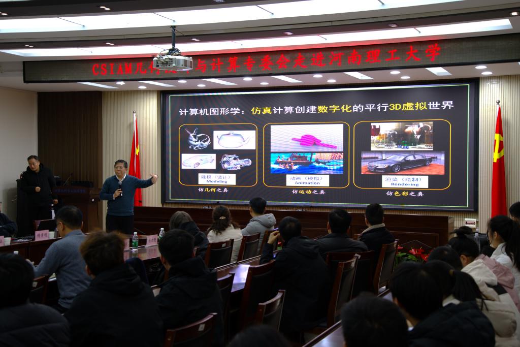 活动开始,必赢242net官网院长孙君顶致欢迎辞,并介绍了学院的发展历史、专业建设、人才培养、科研情况等。国家杰青、专委会主任、中国科学技术大学刘利刚教授对CSIAM几何设计与计算专委会进行了介绍,并做了“CAD/CAE/CAM一体化简介”的报告。