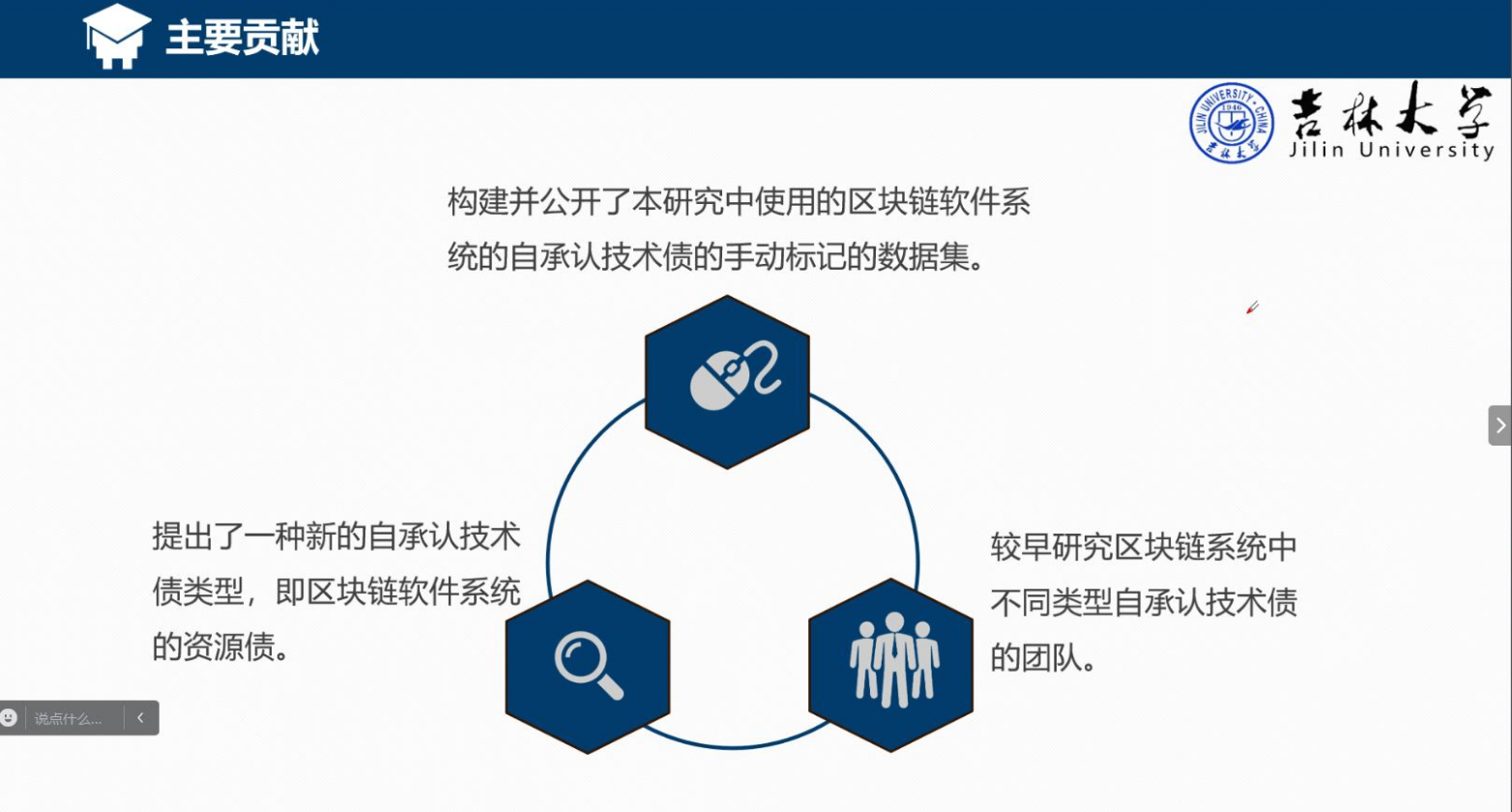 报告会上,包铁教授从区块链软件系统中技术债的概念及研究意义、目前的研究工作、团队研究工作、可解释性研究等方面进行了详细的讲解。首先包铁教授针对区块链软件系统应用的特点和面对的问题,介绍了技术债对于分析和改善软件质量的作用;其次重点分析了基于区块链软件系统中自承认技术(SATD)的类型、分布情况以及SATD的研究意义;然后通过构建涵盖多种编程语言的数据集,分析传统SATD判别方法的有效性,最后基于区块链软件系统的实现特点,给出有效判别软件代码中SATD的建议。