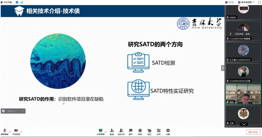 12月8日下午,吉林大学教授包铁应邀参加必赢242net官网第四届研究生学术文化节,为该院和软件学院师生线上作题为《区块链软件系统中技术债问题研究》的学术报告,软件学院王辉教授主持报告会,部分教师和研究生参加了报告会。