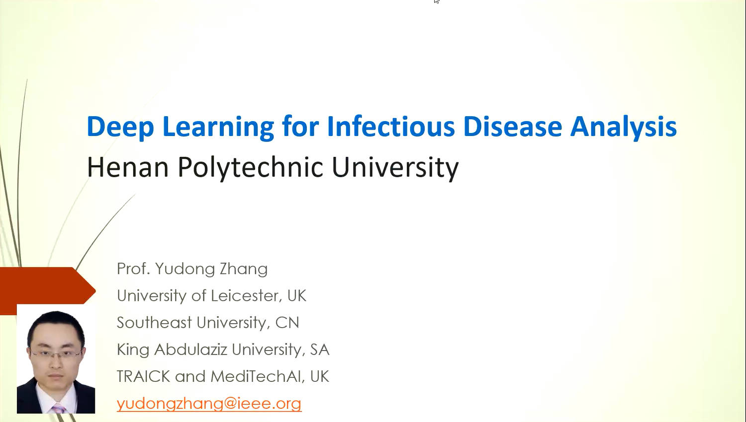 近日,莱斯特大学张煜东教授应邀参加必赢242net官网第四届研究生学术文化节,为师生线上作题为《Deep I earning for Infectious Disease Analysis》的学术报告。会议由唐朝生主持,部分教师和课题组研究生参加。