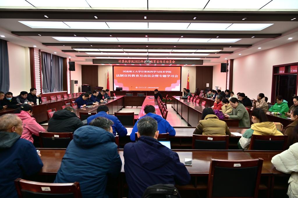 在会上,阎俊豪副书记传达了学校《关于开展法治宣传教育月活动的通知》文件精神,对学院法制宣传教育月的活动进行了规划和部署,并组织全体教职工观看了法制专题讲座《坚持全面依法治国,推进法治国家建设》。他强调,学院将深入学习贯彻习近平法治思想,切实落实国家、河南省以及学校“八五”普法规划。学院会将法治宣传教育与依法治校工作相结合,全面推进依法治教、依法治校和依法办学的进程,提升广大师生的法治意识和法治思维。