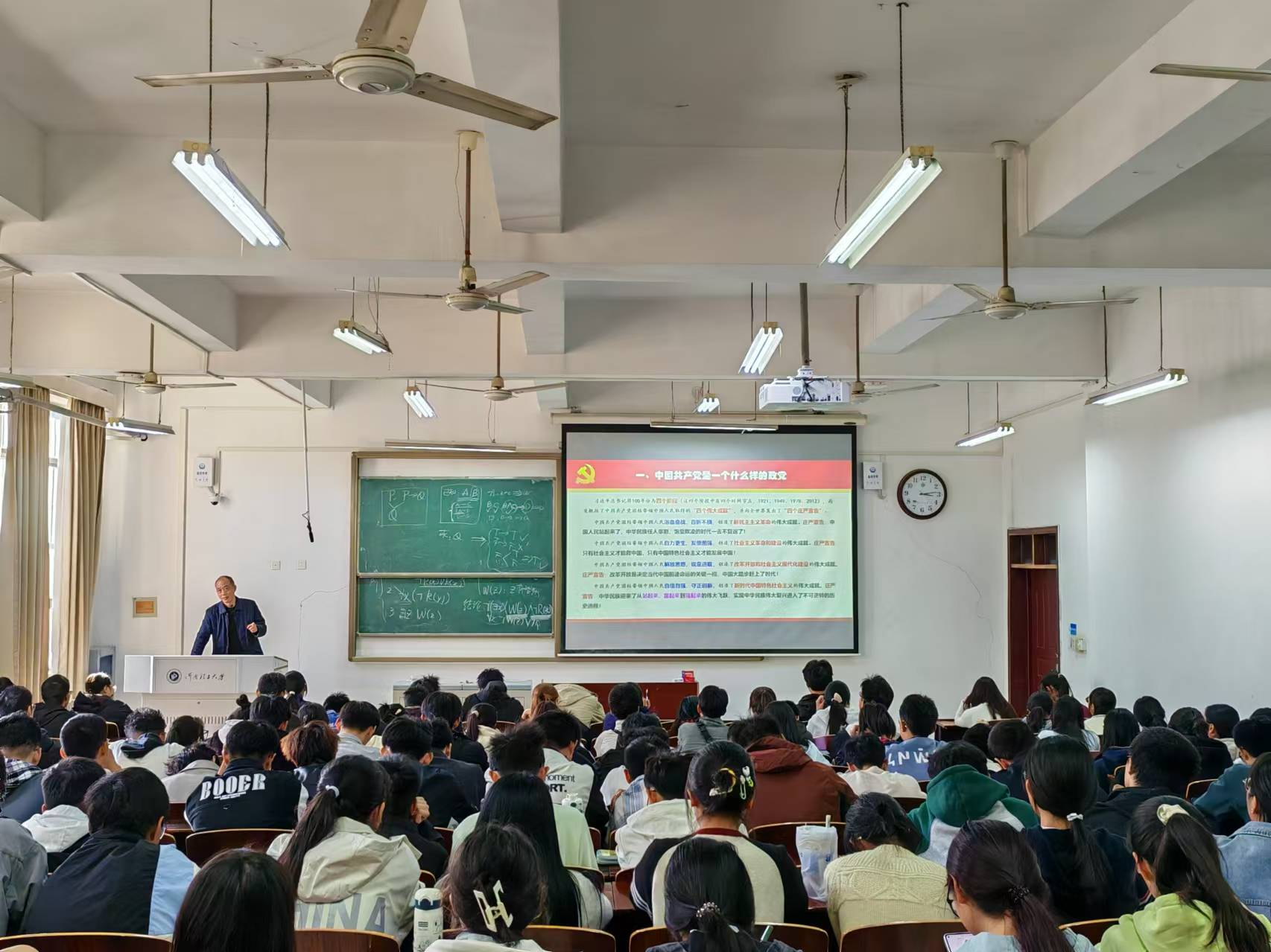 朱天明首先从党的百年奋斗历程及取得的重大成就和党的性质、宗旨、指导思想、最终目标等角度,围绕“中国共产党是一个什么样的政党?”展开论述,充分论证了中国共产党是中国历史上最伟大、最先进的政党。接着,深刻阐述了“大学生为什么要追求加入中国共产党?”他强调:大学生追求入党是树立崇高信仰的需要,是健康成长成才的需要,是担当民族复兴大任的需要。最后,就“怎样才能加入中国共产党”进行了详细指导,并希望同学们加强政治学习,增强党性修养,学好专业知识,端正入党动机;熟悉入党程序,保持政治定力,克服不良心态,积极靠近组织,争取早日加入中国共产党,用信仰点亮人生,让青春不负韶华。