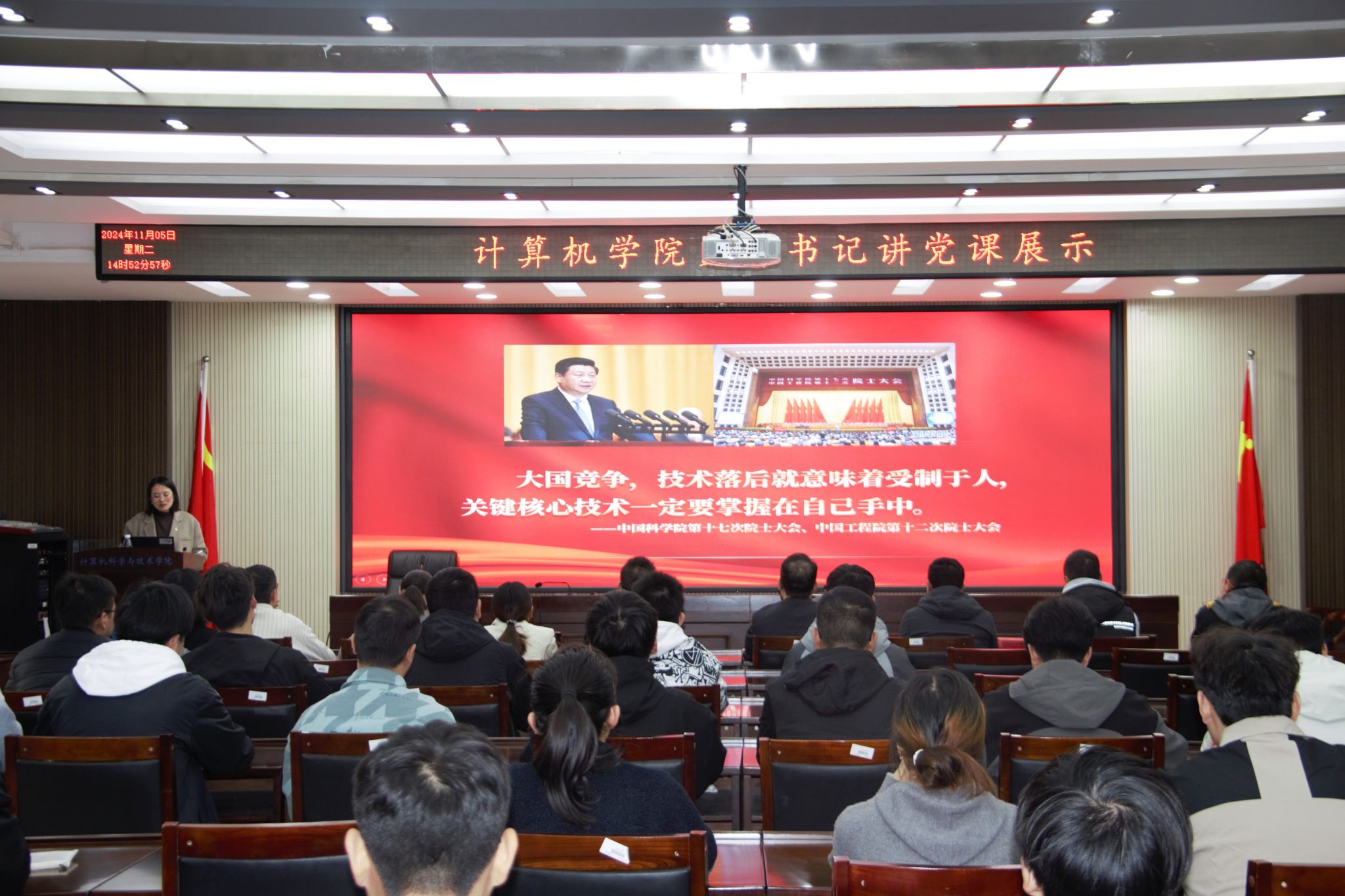 学院党委书记许辉对此次讲党课活动给予了点评。他表示,这不仅是一次深刻的思想交流,更是一次难得的学习与提升的机会。他强调,讲党课是加强党员思想政治教育、提升党组织凝聚力以及促进履职尽责的重要途径,我们必须持续不断地将其抓实抓好。同时,他就党支部书记如何更好地开展党支部工作,提出了四点具体要求:一是强化理论武装,不断提升政治素养;二是严肃组织生活,强化党员教育管理;三是创新工作方法,增强党建工作实效;四是要密切联系群众,服务师生办实事。