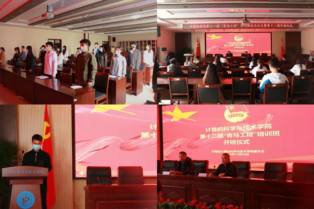 在开班仪式上,邵水军进行了动员讲话,他首先对第十一期青马班一年来所开展的课程培训及活动进行了回顾,对第十一期青马班的圆满结束表示热烈祝贺,并希望青马班学员在人生道路上能够砥砺前行,拼搏向上,努力成为有理想有担当的新时代好青年。之后,他对第十二期青马班学员提出“三个要”:一要认真学习党的二十大精神,提升自我修养;二要努力学习科学文化知识,敢于担当作为;三要持续发扬艰苦奋斗精神,勇担时代使命。计算机2001班王宇豪作为第十一期青马班学员代表进行发言,计算机2104班杨其麟作为第十二期青马班学员代表发言。