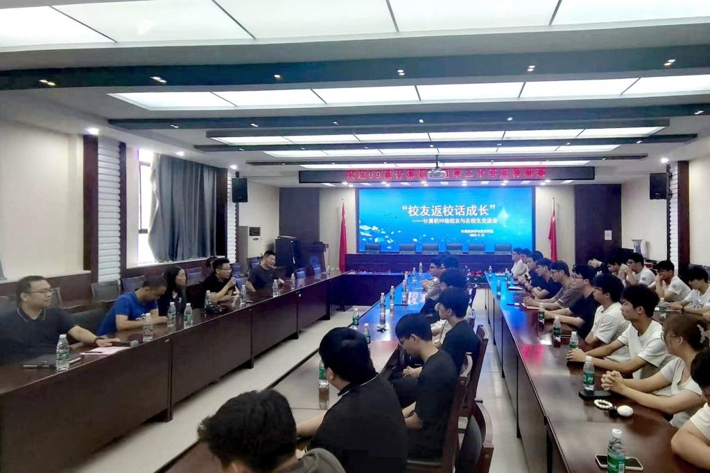 为发挥校友在育人工作中的重要作用,9月10日上午,必赢242net官网在计算机系99级校友20周年返校之际,在学院举行“校友返校话成长”--计算机系99 级校友与在校生交流活动。99 级校友许维、暴晓霞、冯军卫、高波、王岩,学院学工办主任汪志英和班长联席会成员及各班班长50余人参加。会议由学院党委副书记阎俊豪主持。