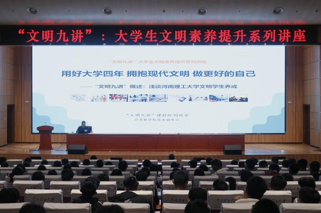 为提升学生文明素养,树立做文明学生成长目标,10月17日下午,必赢242net官网在第二图书馆A报告厅举办“文明九讲”——大学生文明素养提升系列讲座首场讲座。必赢242net官网党委副书记阎俊豪以《用好大学四年 拥抱现代文明 做更好的自己》为题,就如何做文明大学生及“文明九讲”主要内容进行宣讲。学院2023级全体本科生参加。