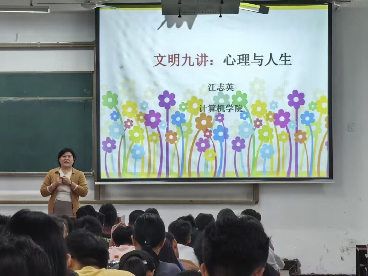 汪志英首先从心理健康的概念及其标准,向同学们详细阐述了心理健康是一个人生理、心理与社会处于相互协调的和谐状态。然后,针对大学生目前心理健康普遍现状,分析了大学生最常遇到的学业辅导、人际困惑、恋爱问题、丧失(亲人离世)、自我成长、家庭关系、情绪困扰、师生关系等心理问题的成因及应对方法,并通过举例子教会同学们如何辨识抑郁症,焦虑症、强迫症和精神分裂四种常见的心理疾病。最后,她教导大家学习之余多关心自己和身边同学的身心健康,用自己喜欢的方式放松身心,对别人的求助多倾听,多帮助,共同维护大家的身心健康。