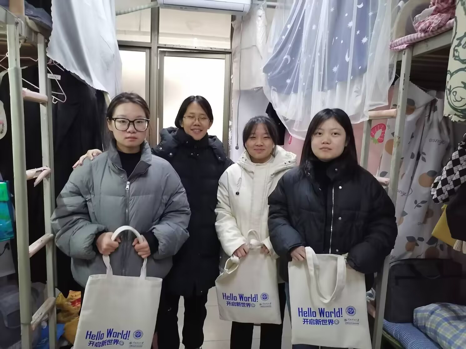 考研助力包由学院原创帆布手提袋、透明证件文具袋和暖宝宝套装组成,其中原创帆布手提袋由计算机学科元素“Hello World”和院名院徽构成,体现学院文化标识,透明证件文件袋为考生考试所需,暖宝宝是针对前期考研学子调研反映复习考试期间天气寒冷问题的应对措施。为不打扰考研学生复习节奏,助力包发放采取班级集体领取和宿舍、教室发放等多种方式,确保全覆盖,同时也适当扩大到部分家庭困难学生。发放过程中,老师们也全面了解了考研学生的备考情况和所想所需,解答处理了一些实际的学习生活问题。
