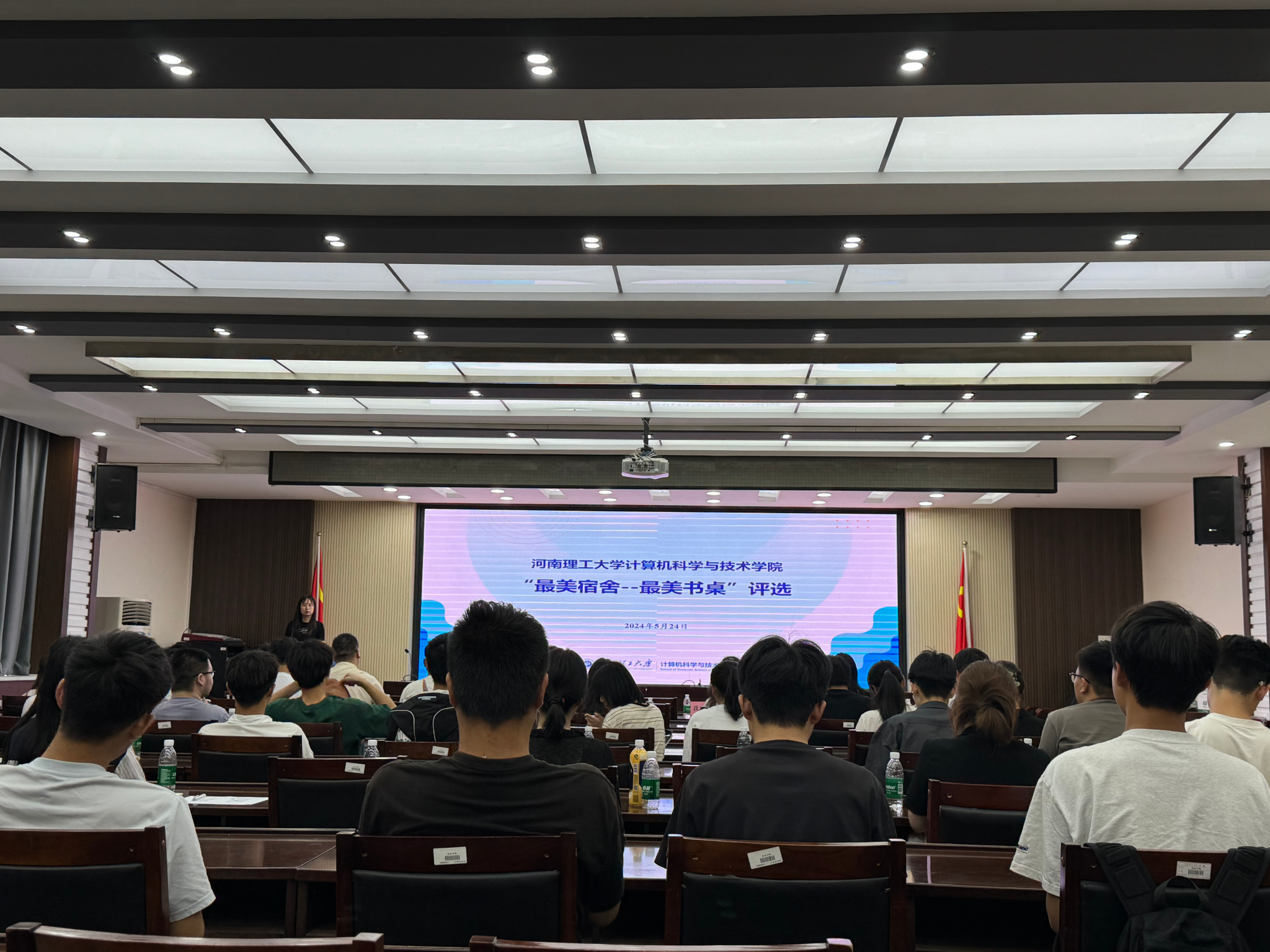 为加强学院宿舍文化建设,提升学生自我管理能力,必赢242net官网举办了首届“最美宿舍”“最美书桌”评选活动,5月24日,最终评审在学院报告厅举行,辅导员及22级、23级宿舍代表和学生评委50余人参加活动。