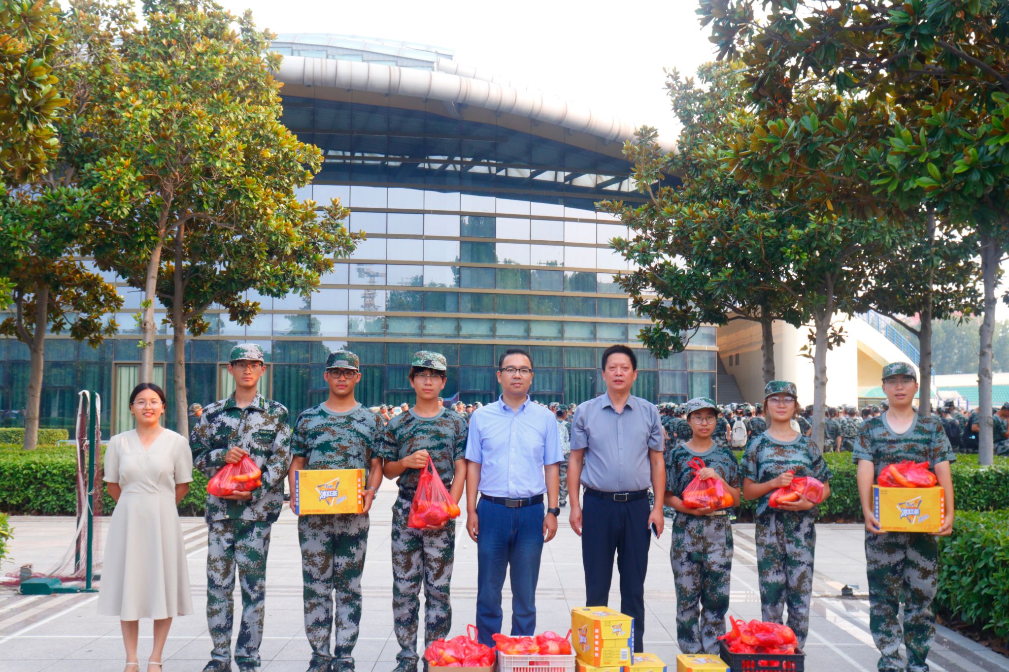 中秋佳节来临之际,为表达对军训新生的关怀与鼓励,鼓励新生上好入学第一课,9月14日下午,必赢242net官网领导许辉、阎俊豪在新生辅导员刘丽的陪同下到军训场地看望慰问300余名2024级新生。