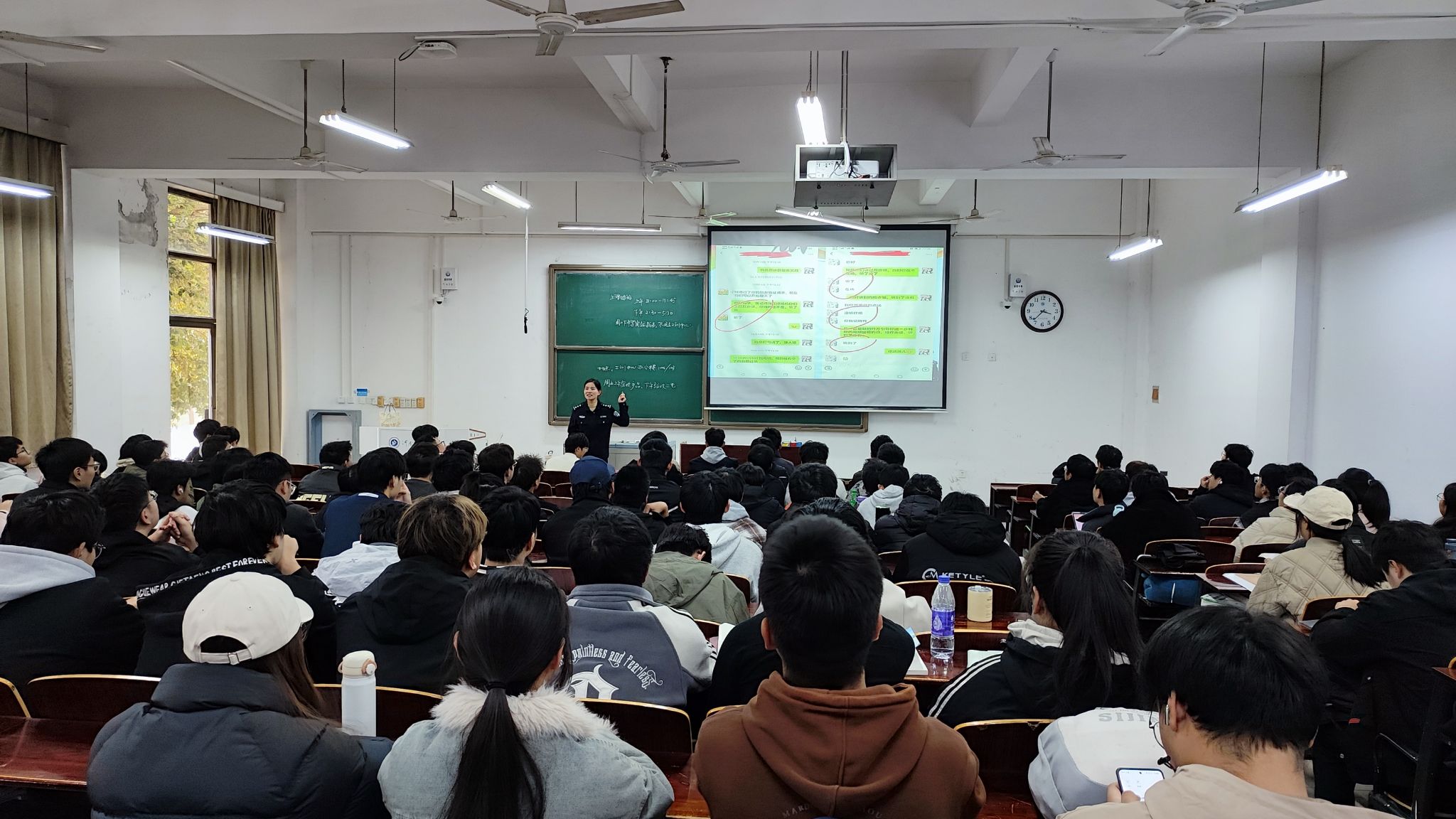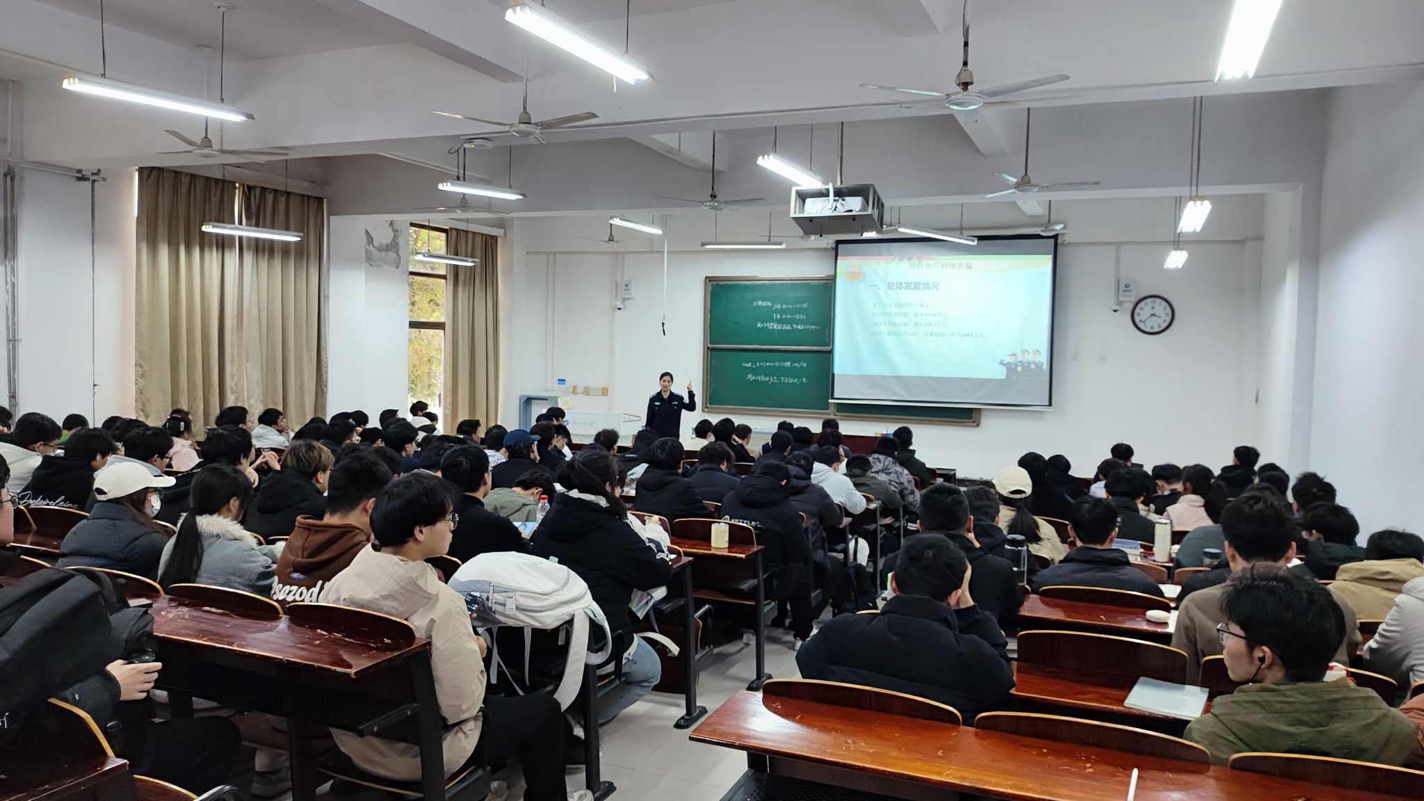 讲座中,苏文君结合当前社会热点和大学生群体的特点,深入浅出地讲解了法律知识。通过剖析真实案例,普及了防范网络诈骗、校园欺凌等法律知识,引导学生们认识到法律的重要性和严肃性,以及违法犯罪行为对个人、家庭和社会的危害,帮助他们提高自我保护意识和能力。同学们听得津津有味,不时与苏警官进行互动交流,在交流环节,苏文君还为踊跃回答的学生送上了精美礼品。学生们纷纷表示,通过此次讲座,自己对法律有了更加深入的认识和理解,今后将自觉遵守法律法规,用法律武器维护自己的合法权益。
