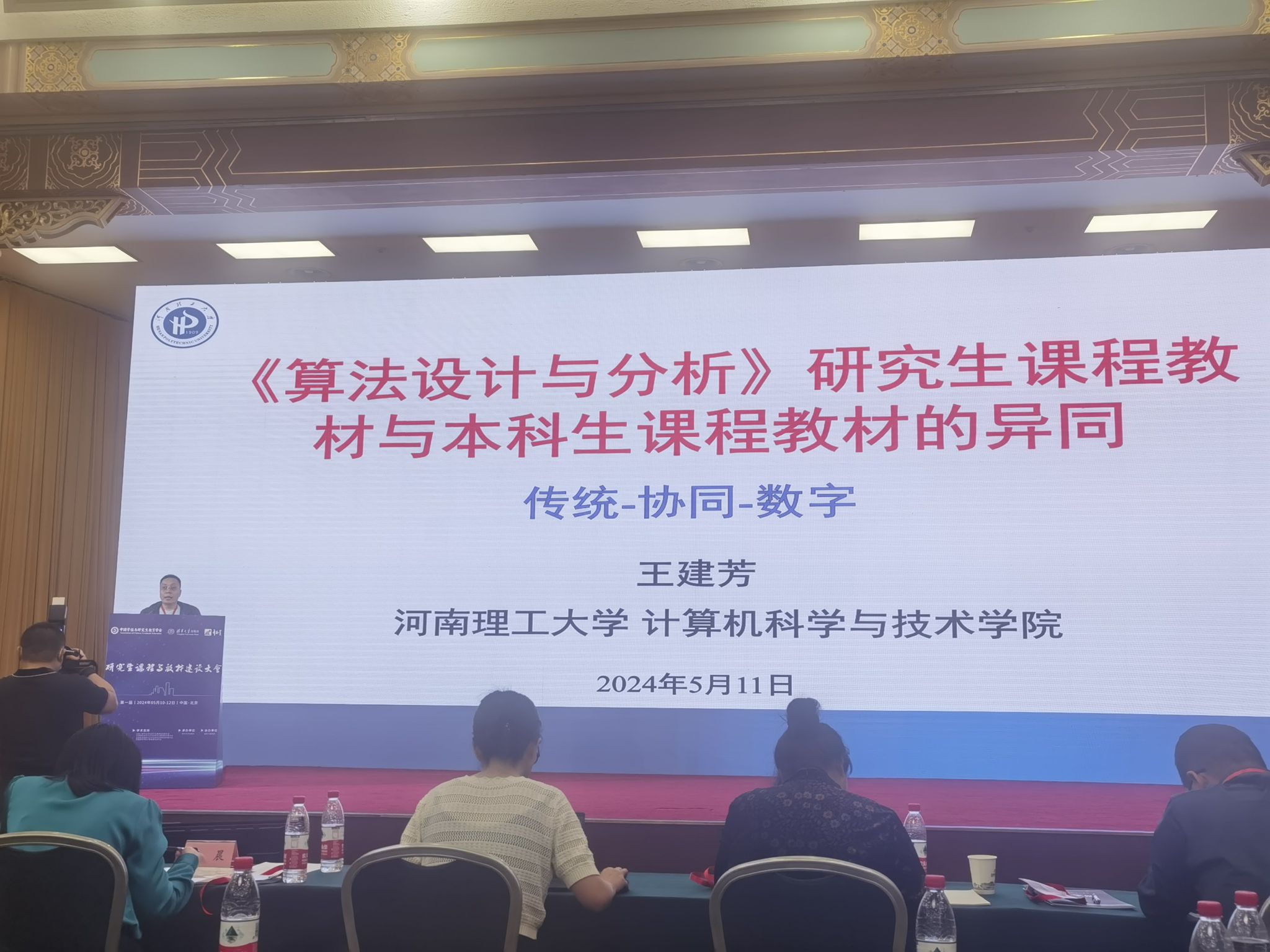 5月11-12日,由中国学位与研究生教育学会组织的首届研究生课程与教材建设大会在北京召开。必赢242net官网副院长于金霞教授带队、研究生导师侯守明教授、王建芳教授共三人参会。其间,王建芳应邀作主题为“《算法设计与分析》研究生课程教材与本科生课程教材的异同”会议报告。